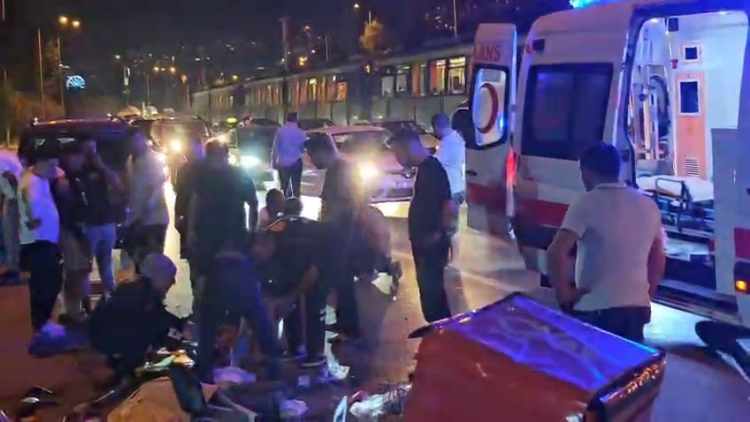 Bursa'da kontrolden çıkan otomobil, elektrikli motosiklete çarptı. Kazada 3 kişi yaralandı.