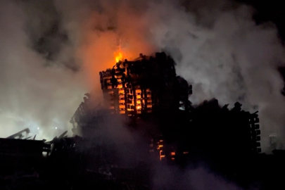 Dizili haldeki tutuşan paletler itfaiye ekiplerince söndürülürken, yangına müdahale eden bir işçi ise yaralandı.