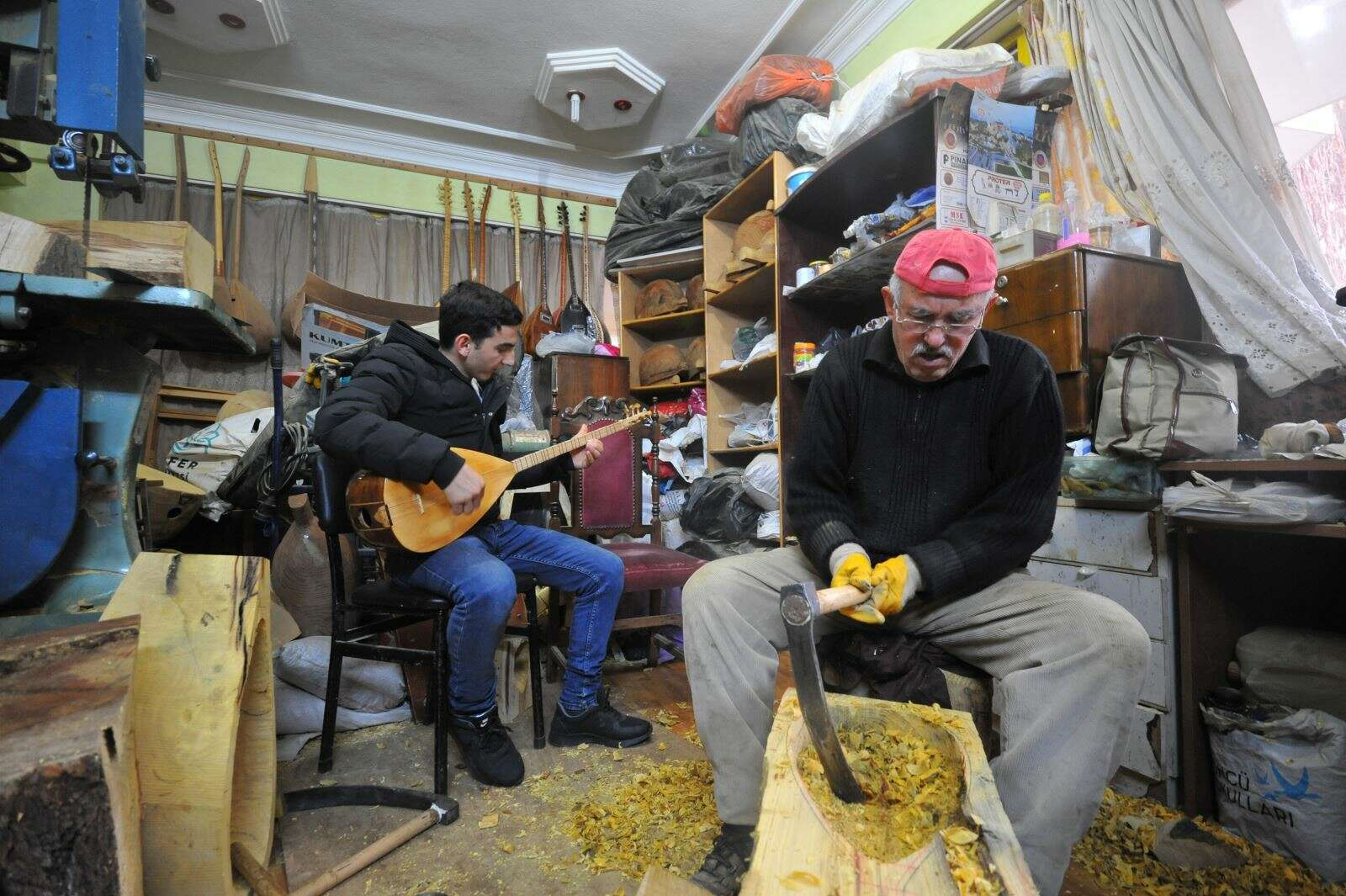 En iyi saz ve bağlamanın dut ağacından yapıldığının altını çizen Sadık Sağlam, "6 yıl bekledikten sonra ağacın kabasını oyuyoruz. Daha sonra sonra tuzlu suya atarak 1 buçuk ay bekletiyoruz. Böylece ağaç acı suyunu atmış oluyor, yani ağaç tuzlu suda fırınlanmış oluyor. Ardından tekrar yavaş yavaş kabasını alıyoruz" dedi.