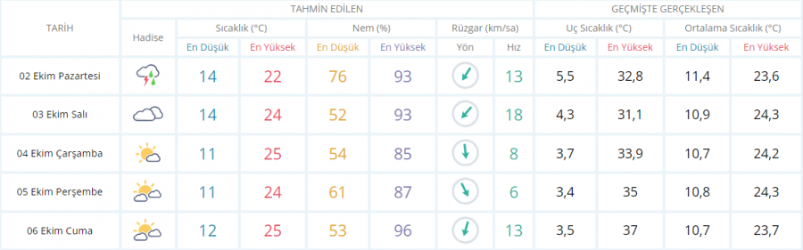 5 GÜNLÜK HAVA DURUMU TAHMİNİ
