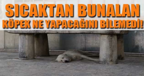 Sıcaktan bunalan köpek musalla taşının altına yattı