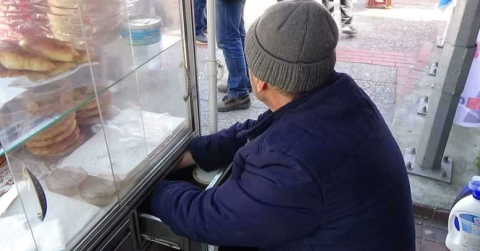 Bursa’da Setbaşı Köprüsü’nde 18 senedir simit satarak geçimini sağlayan görme engelli Ahmet Tıkızoğlu, engeli vicdanında olan insanlar tarafından dolandırılıyor. Ellerini simit arabasının çekmecesinde ısıtan Tıkızoğlu, yetkililerden soğuğa karşı bir tedbir alınmasını istiyor.