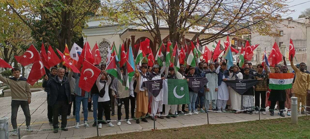 Bursa'da 89 farklı ülkeden 155 öğrencinin eğitim gördüğü proje okulu Osmangazi Belediyesi Uluslararası Murad Hüdavendigar Anadolu İmam Hatip Lisesinin öğrencileri, İsrail'in Filistin'e saldırılarını kınadı. Ülkelerine ait yöresel kıyafetlerini giyen çok sayıda öğrenci, Tophane Meydanı'ndaki Osman Gazi Türbesi önünde bir araya geldi.