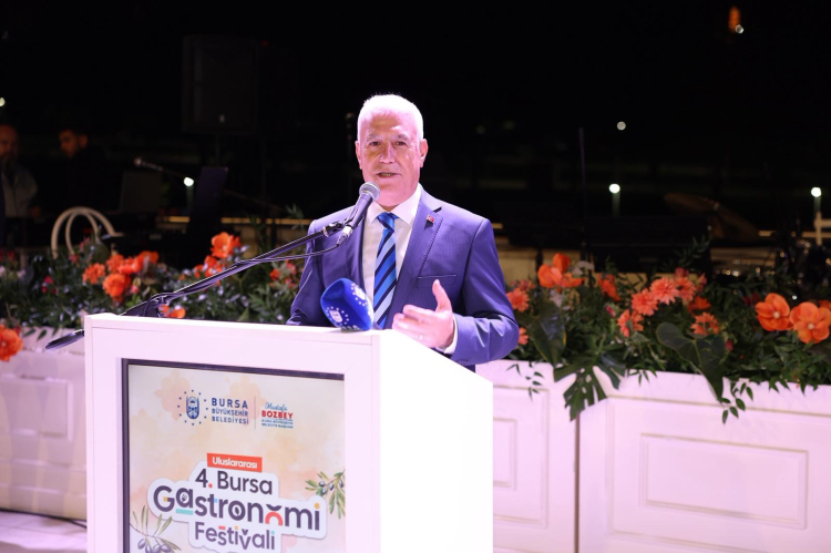 Gala yemeğinde konuşan Büyükşehir Belediye Başkanı Mustafa Bozbey, Bursa’nın köklü mutfak kültürünü dünyaya tanıtmak ve gastronomi turizmine yeni bir soluk kazandırmak adına önemli bir adım attıklarını söyledi. 4. Uluslararası Bursa Gastronomi Festivali açılışının adeta şölen tadında gerçekleştiğini belirten Başkan Bozbey, "Festivalimiz, dostluğu, kardeşliği, paylaşmanın bereketini ve Bursamızın topraktan tabağa uzanan tüm değerlerini yansıtan bir şölen niteliği taşıyor. ‘Tescilden Tabağa Bursa Gastronomisi’ adlı eşsiz eseri Bursamıza kazandıran başta Akademisyen Yazar Fatih Yıldırım’a, fotoğraf ve video çekimlerinden düzenlemelere kadar emeği geçen herkese teşekkür ediyorum. Festivalimizin, Bursamızın köklü mutfak kültürünü dünyaya tanıtacağı dolu dolu bir şölen olmasını diliyorum" dedi.