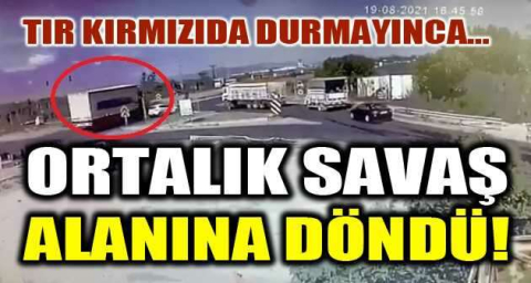 TIR kırmızıda durmayınca ortalık savaş alanına döndü