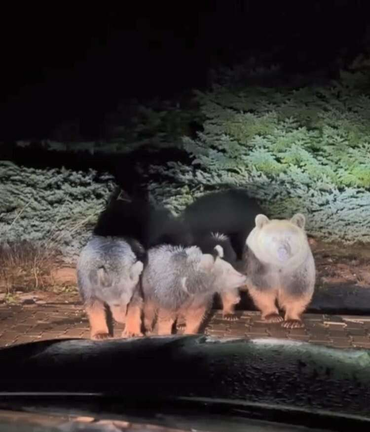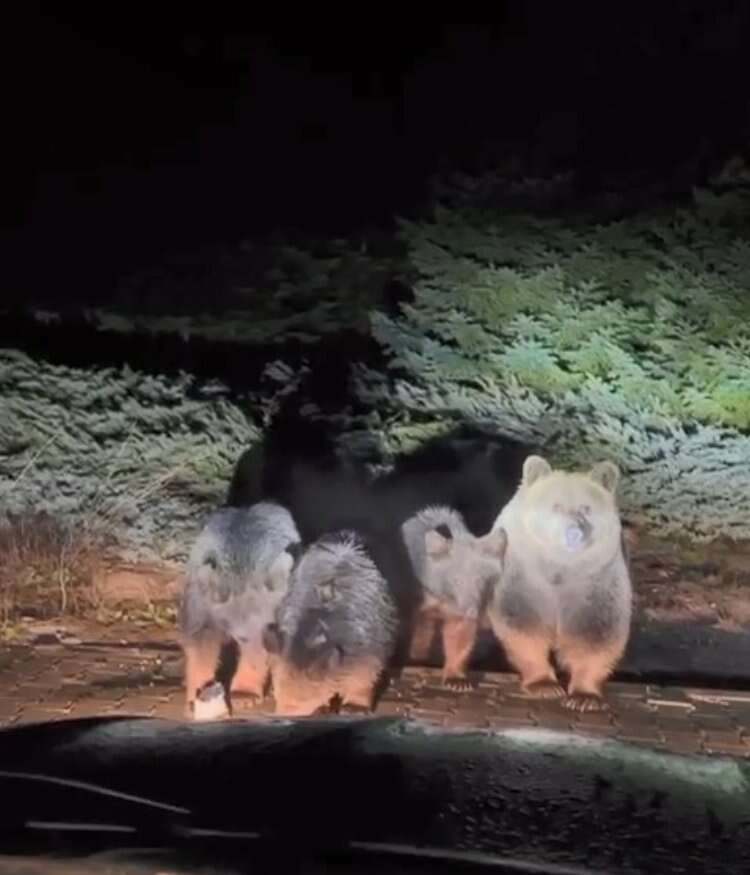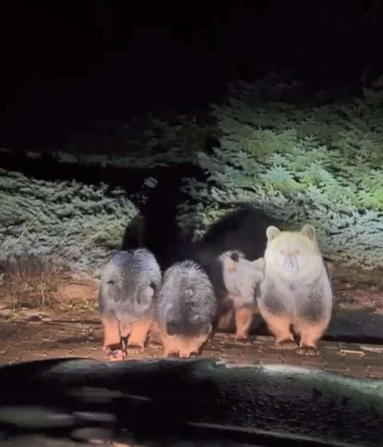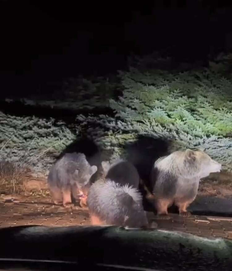 4 kişilik ayı ailesi, verilen yiyecekleri afiyetle yedi. O anlar anbean amatör kameralara yansıdı.