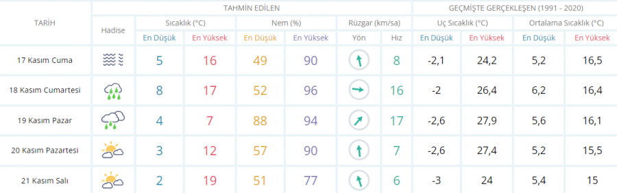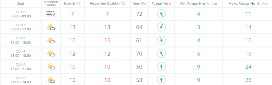 Az bulutlu, zamanla parçalı çok bulutlu gece saatlerinde sağanak yağışlı geçeceği tahmin ediliyor. Yağışların yer yer kuvvetli olması bekleniyor.