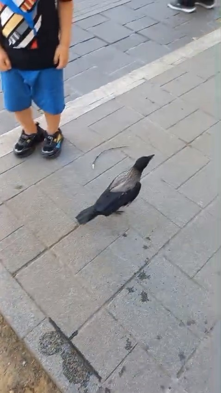 Yaban hayvanı olmasına rağmen karganın sevilmek istediğini söyleyen Enver Koç, "Markete doğru giderken yerde duran bir karga gördüm. Yardım istediğini hissettim. Yaklaştım ve sevdim. Kediler ya da başka hayvanlar zarar verebilir diye endişelendim. Ayağında ya da başka bir yerinde kanama vardı. Daha sonra yaralı kargayı veterinere götürmesi için Şehreküstü Zabıta Noktası'na gittim. Görevli geldi ama kargayı yakalayamadı. Yoğun uğraşlar sonucunda ben yakaladım ve karakola götürdük. Çok sevimli bir hayvandı. Uygun bir yerim olsaydı ben alacaktım. Zabıta noktasında pansuman yapmışlar, su vermişler. Kapı açık olunca bir anda uçup gitmiş. Bir daha da göremedim. Ona acıdım çünkü yaralıydı. Yaban hayvanı olmasına rağmen sevilmek istiyordu. Başını okşadım, sakinleşti" diye konuştu.