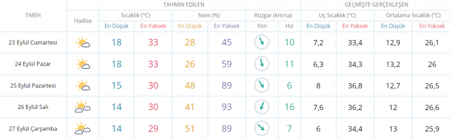 5 GÜNLÜK HAVA DURUMU TAHMİNİ