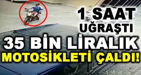 Zinciri kırmak için bir saat uğraşıp 35 bin liralık motosikleti çaldı