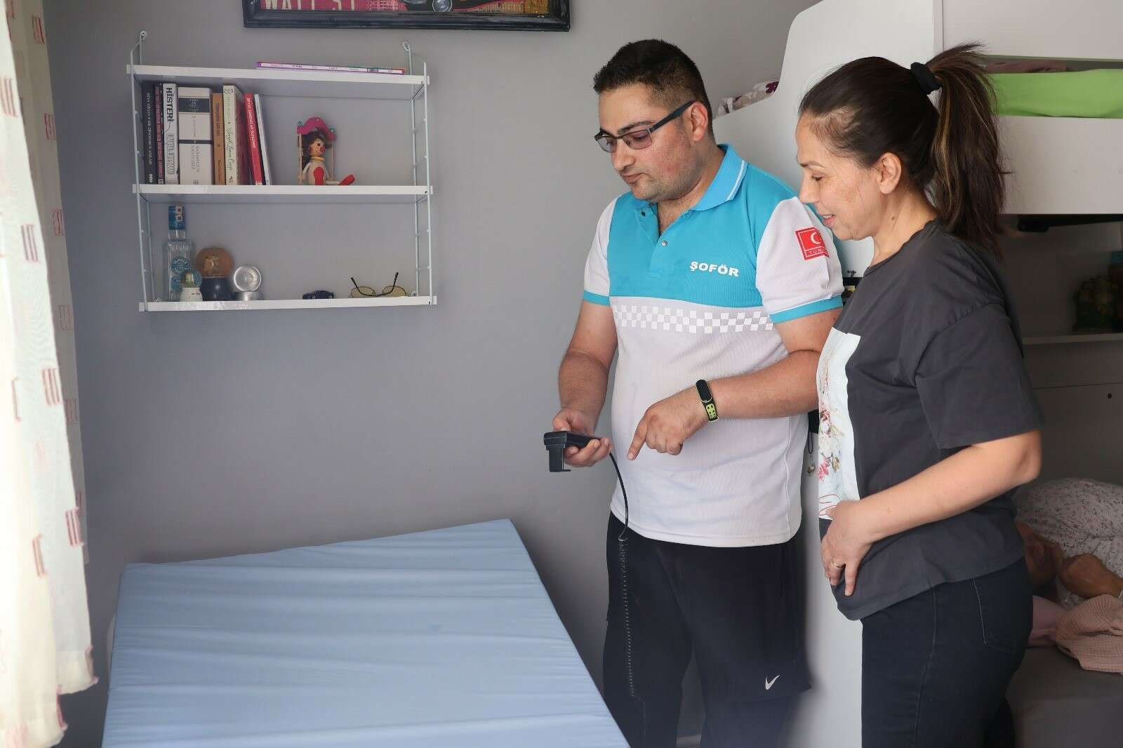 Verilen uzaktan kumandalı yatakların hem sırt hem de ayak kısmı hareket ettirilebiliyor. Elektrikli hasta yatağı kumandayla kolaylıkla hastanın rahat edebileceği şekilde evine yerleştiriliyor.