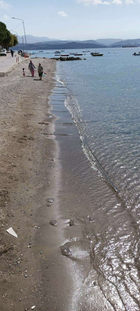 Gemlik'in Küçükkumla Mahallesi'ndeki sahil boyunda denizanası istilası yaşanıyor. On binlerce denizanası, sahili şeridini doldururken, o anlar tekneyle suda ilerleyen balıkçıkların kamerasına yansıdı. Bazı vatandaşlar denizanası artışının en önemli sebebinin deniz kirliliğinin yanı sıra kaçak avlanmalar olabileceğine dikkat çekti.