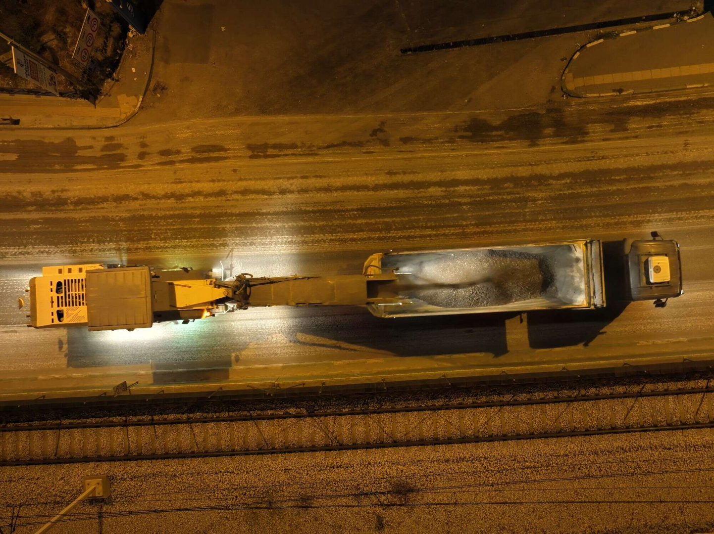 Cuma gece saatleri 23.59'u gösterdiğinde yolun trafiğe kapatılmasıyla başlayan çalışmada hat üzerinde freze çalışması gerçekleştirildi. Trafiğin aksamaması için Cumartesi sabahı ulaşıma açılan yolda asfaltlama çalışmalarına ise Cumartesi gece yarısından sonra başlandı.