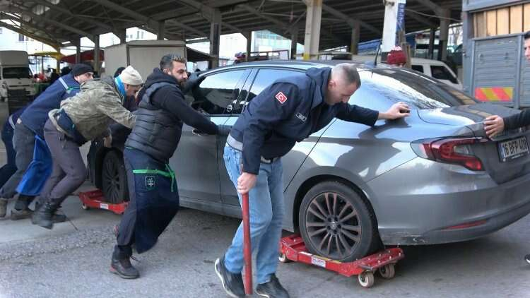 Bursa Pazarcılar Odası, esnafının en büyük problemlerinden biri olan pazar alanında unutulan araçları kaldırmak için yeni bir yöntem geliştirdi. Otomobillerin tekerleklerine yerleştirilen tekerlekli kaydıraklar yardımıyla aracın zeminden bağlantısı kesilerek taşınmaya hazır hale getiriliyor.