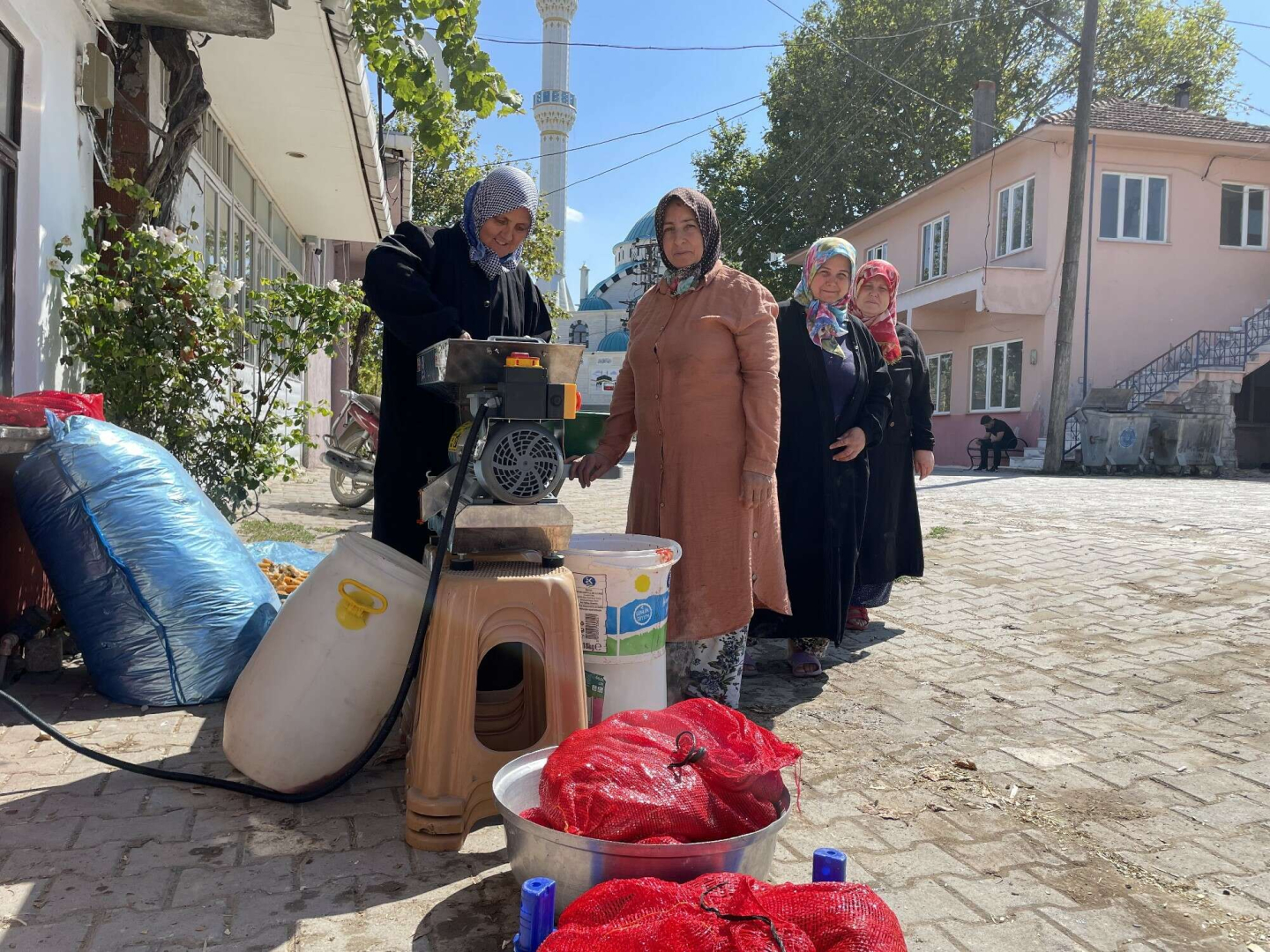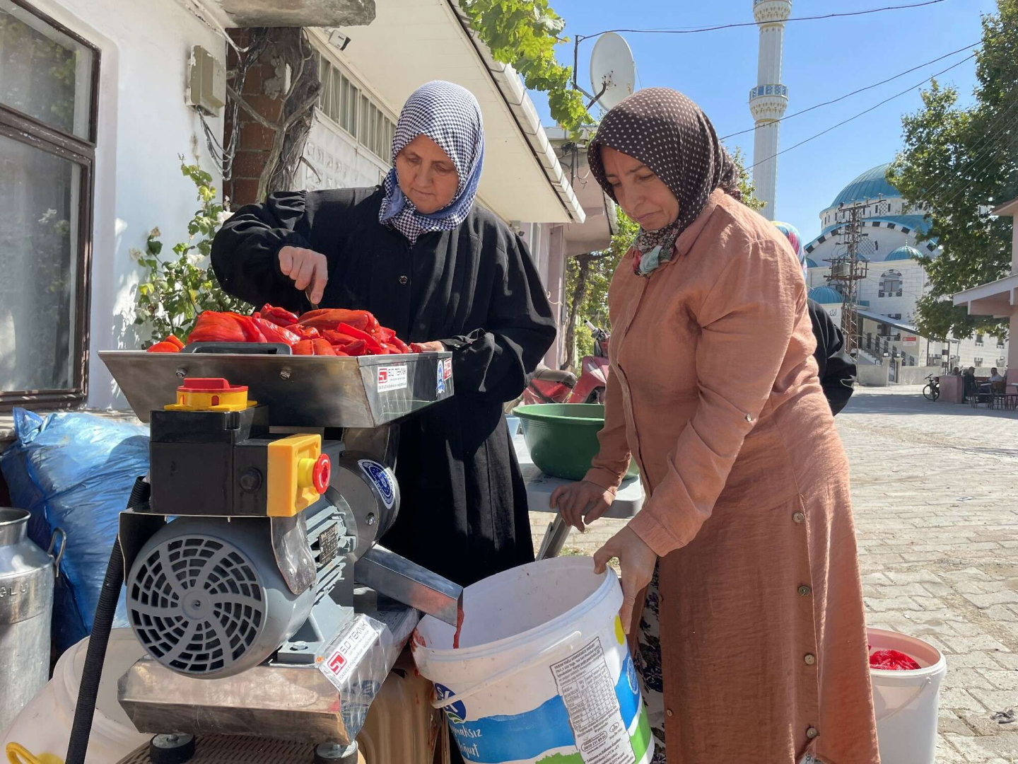 Daha önce domates ve biberleri elleriyle kevgirden geçirerek salçalık kıvama getiren kadınlar, artık hiç yorulmadan evlerinin önüne kadar getirilen saçma makineleriyle kolaylıkla işlerini halledebiliyor.