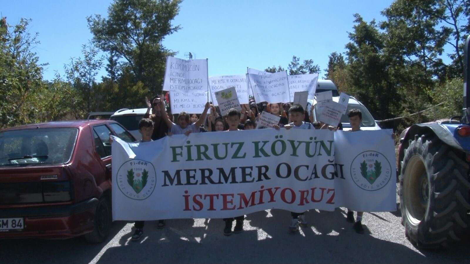 Bursa’nın Orhaneli ilçesine bağlı Firoz köyü yakınlarına yapılan mermer ocağına karşı köy sakinleri eylem yaptı.