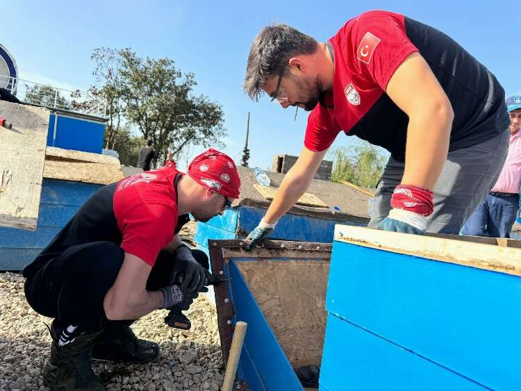 Daha öncesinde sıfır kulübeler yapan NAK ekibi bu yıl mevcutta bulunup hasar gören kulübeleri tamir etti.
