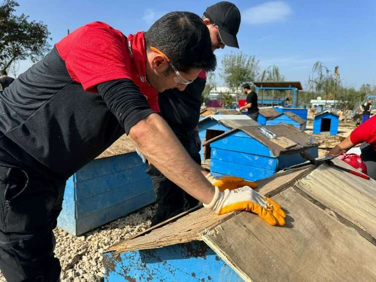 NAK ekipleri, bu defa sahipsiz köpeklerin kulübelerini onarmak ve bakım yapmak için HEPAD’ın yardımına koştu.