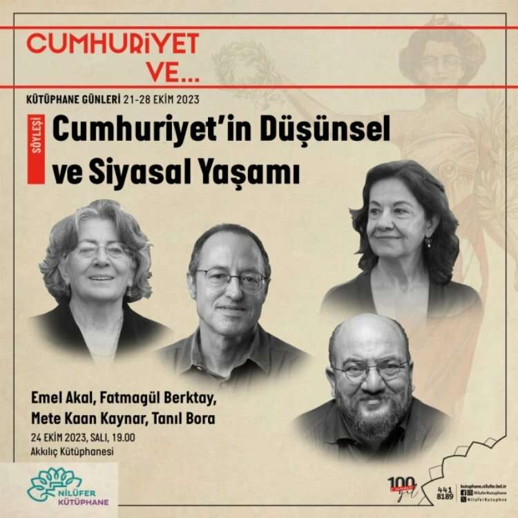 Nilüfer Belediyesi’nin 21-28 Ekim tarihleri arasında düzenleyeceği “Nilüfer Kütüphane Günleri”nde, 100. yılında Cumhuriyet, geçmişi, bugünü ve geleceğiyle tartışılacak. Değerli isimlerin konuk olacağı etkinliklerde Cumhuriyet, sanattan edebiyata, medyadan siyasal yaşama kadar çok yönlü olarak ele alınacak.