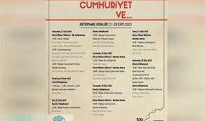 23 Ekim Cumartesi günü Çocuk Kütüphanesi’nde gerçekleştirilecek buluşmada Burcu Bahar “Cumhuriyet ve Atatürk” üzerine çocuklarla söyleşirken, 24 Ekim Salı günü Üçevler Kütüphanesi’nde düzenlenecek atölyede de Murat Sevinç, “Anayasa ve Demokrasi'yi konu alacak. Aynı gün saat 19.00’da Akkılıç Kütüphanesi’nde gerçekleştirilecek “Cumhuriyet’in Düşünsel ve Siyasal Yaşamı” söyleşisine de Emel Akal, Fatmagül Berktay, Mete Kaan Kaynar ve Tanıl Bora konuk olacak.
