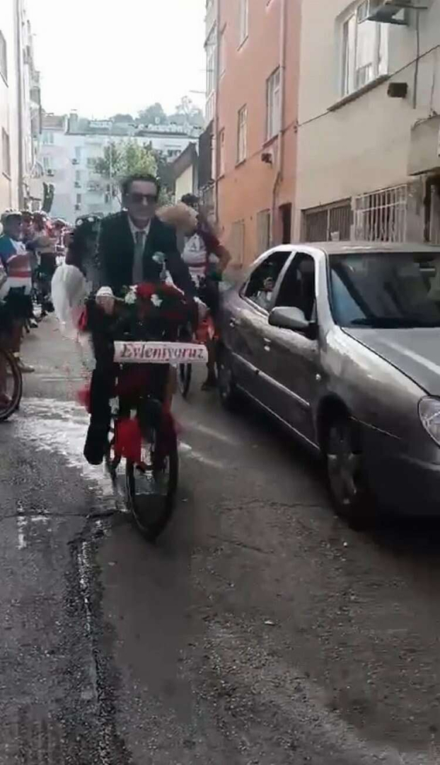Bursa’da bir damat adayı ve arkadaşları gelin alma merasimine bisiklet konvoyu ile gitti.