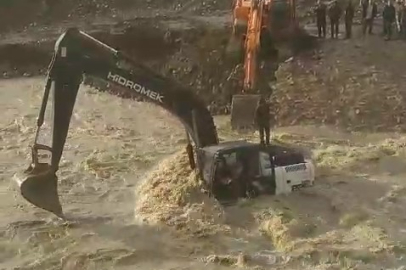 Derenin ortasında mahsur kalan kepçe operatörünün kurtarılma anı saniye saniye kaydedildi. Kepçe operatörü başka bir kepçe yardımıyla sağlıklı olarak kurtarıldı.