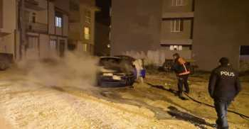 Otomobilin kundaklandığı ihtimali üzerinde duran polis ekipleri, çalışma başlattı.