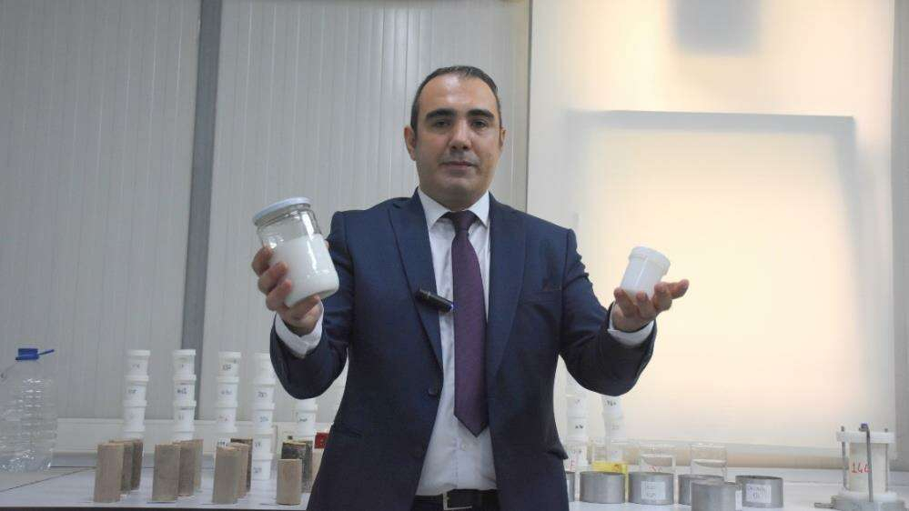 Kumu kısa zamanda kayaç yapıya dönüştüren projenin başında Doç. Dr. Eyübhan Avcı ve Gazi Üniversitesi Mühendislik Fakültesi İnşaat Mühendisliği Bölümü öğretim üyesi Prof. Dr. Murat Mollamahmutoğlu yer alıyor. On beş yıllık bir çalışmanın ürünü olan bu proje ile sıvılaşma potansiyeline sahip zemine oturan binalar yıkılmadan zemin iyileştirilebilecek. Elde edilen ürünün maliyetinin diğer ürünlere göre çok daha uygun olduğunu dile getiren Avcı, yerli ve milli bir proje olan bor katkılı çıktının; zemin iyileştirilmesi sürecinde oldukça hesaplı bir şekilde kullanılabileceğinin de altını çizdi.