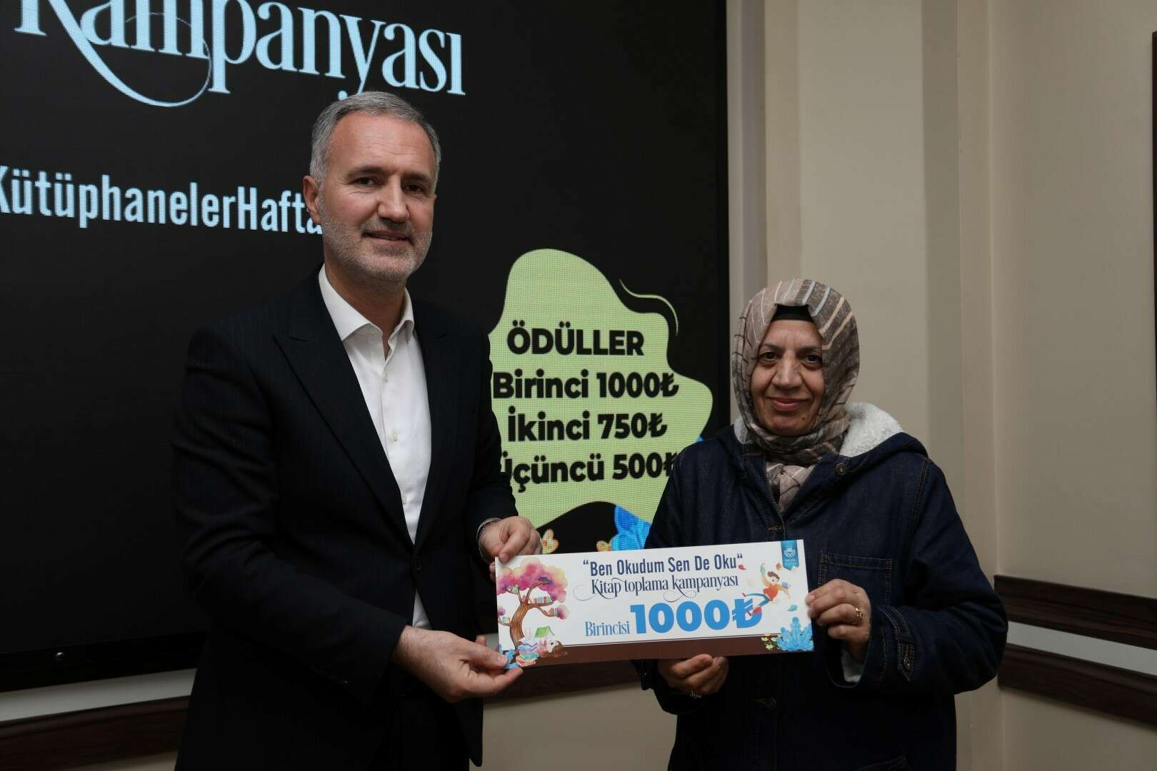 Kampanyada 61 adet kitap bağışlayan Sevil Erdem 1’inci olurken, 42 adet kitap bağışlayan Emre Yaşar 2’nci oldu. 29 adet kitap bağışlayan Ceyda Eryılmaz ise 3’üncü oldu. Dereceye giren vatandaşlar için bugün encümen salonunda ödül töreni düzenlendi.