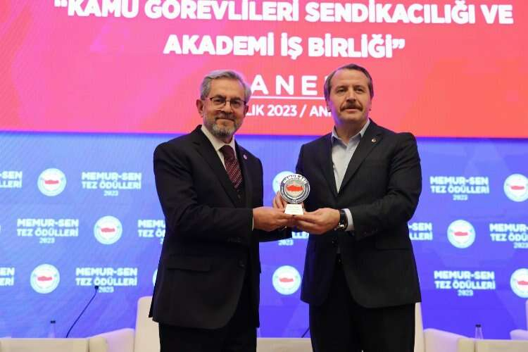 Yüksek lisans dalında Memur-Sen Takdir Ödülleri’ne ise; “Sosyal Denge Sözleşmesinin Sendika Üyesi Belediye Çalışanı Kamu Görevlileri Üzerindeki Etkisi: Pursaklar Belediyesi Örneği” başlıklı tezle Ankara Yıldırım Beyazıt Üniversitesi öğrencisi ve Memur-Sen Toplu Sözleşme Koordinatörü Raşit Eğin ile “Örgütsel Demokrasi ile Örgütsel Bağlılık Arasındaki İlişkide Etik Liderliğin Düzenleyici Etkisi” başlıklı tezle Kırşehir Ahi Evran Üniversitesi öğrencisi Zekeriya Yazıcı layık görüldü.