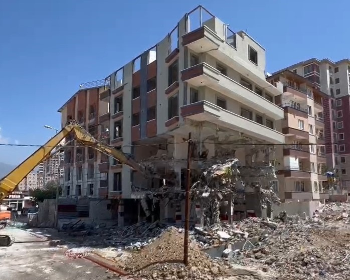 Hatay’ın Antakya ilçesinde kontrollü olarak yıkılan 6 katlı binanın yerle bir olma anı kameraya yansırken vatandaş Hilmi Kara, komşularının yaşadığı binanın yıkımını üzüntülü şekilde izlediğini söyledi.