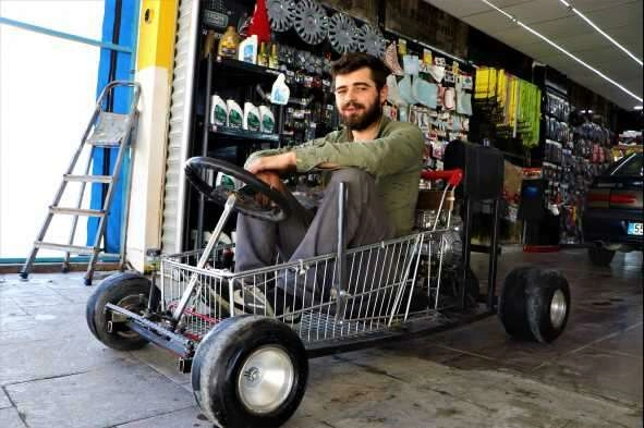Alışveriş sepetinden araba yaptı: 120 km hız yapabiliyor