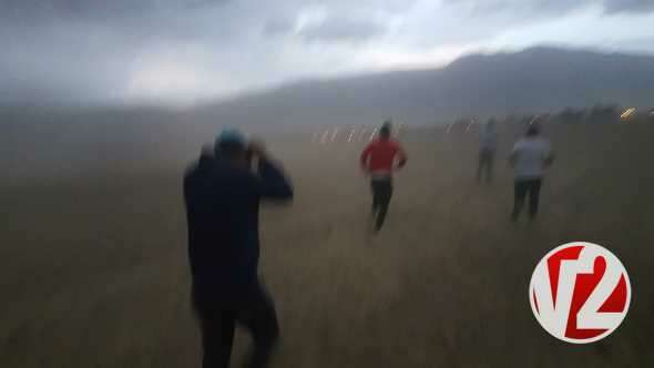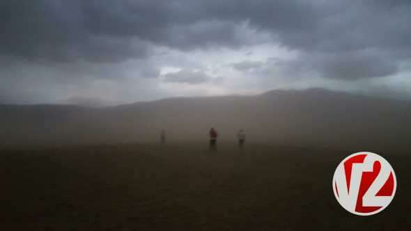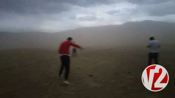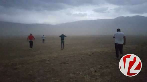 Amatör kameraya yansıyan görüntülerde, vatandaşların toz bulutuna yakalanmamak için telaş içerisinde yerleşim alanına doğru koştuğu görülüyor.