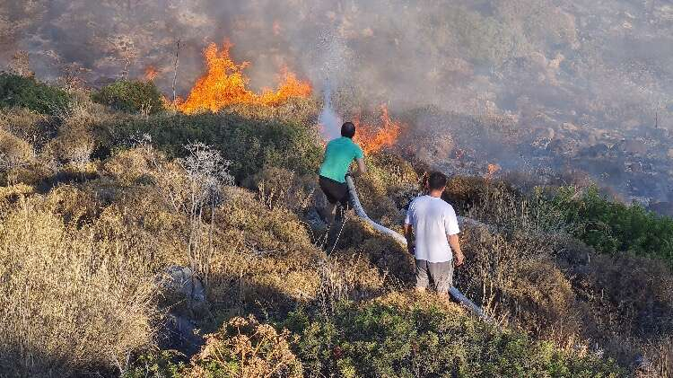 Muğla'nın Bodrum ilçesinde Ali Kelle Ormanı'nda çıkan yangın, havadan ve karadan müdahale ile kontrol altına alındı.