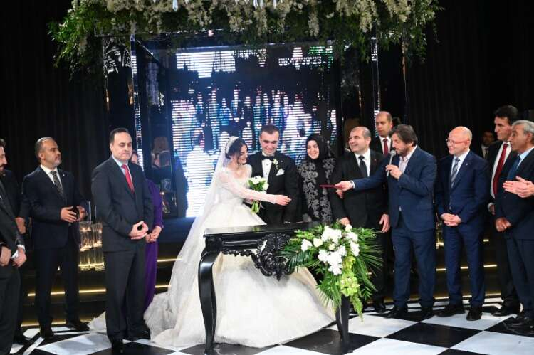 Yeni Türkiye Partisinin Başkanı'nın kızı Duygu Yılmaz ile daha iş insanı Murat Demir'in oğlu Fatih Demir Bursa'da düzenlenen düğün töreni ile dünya evine girdi.