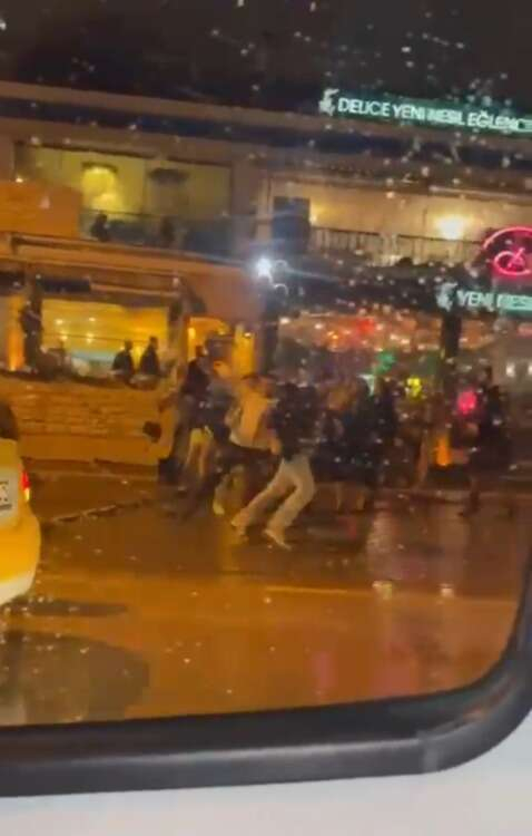 Bursa’da iki grubun kavgasında yumruklar ve tekmeler havada uçuşurken o anlar cep telefon kamerasına yansıdı.