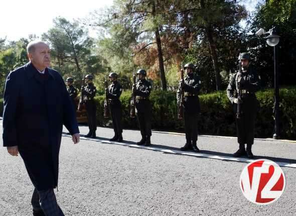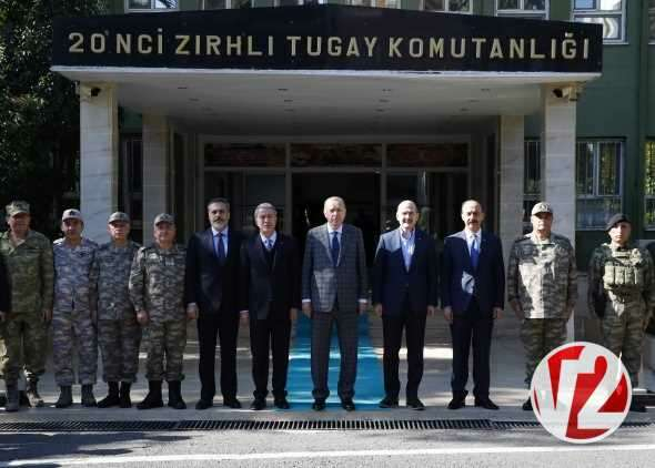 Cumhurbaşkanı Erdoğan, harekat merkezinin bulunduğu 20`nci Zırhlı Tugay Komutanlığına gelişinde askerleri selamladı.
