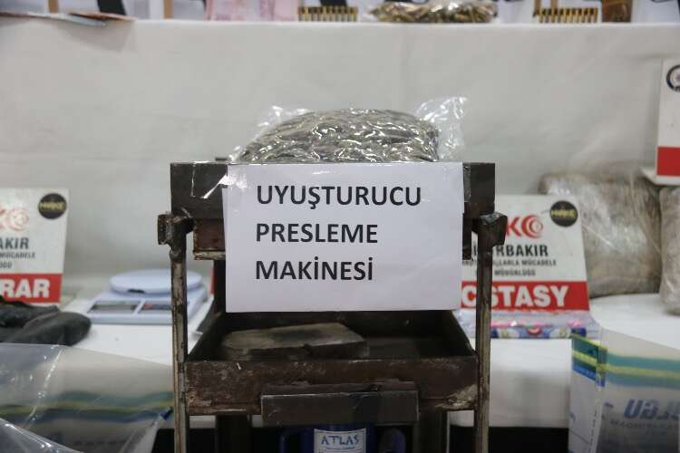 Diyarbakır merkezli 50. ‘Kökünü Kurutma Operasyonunda ele geçirilenler sergilendi: 215 gözaltı