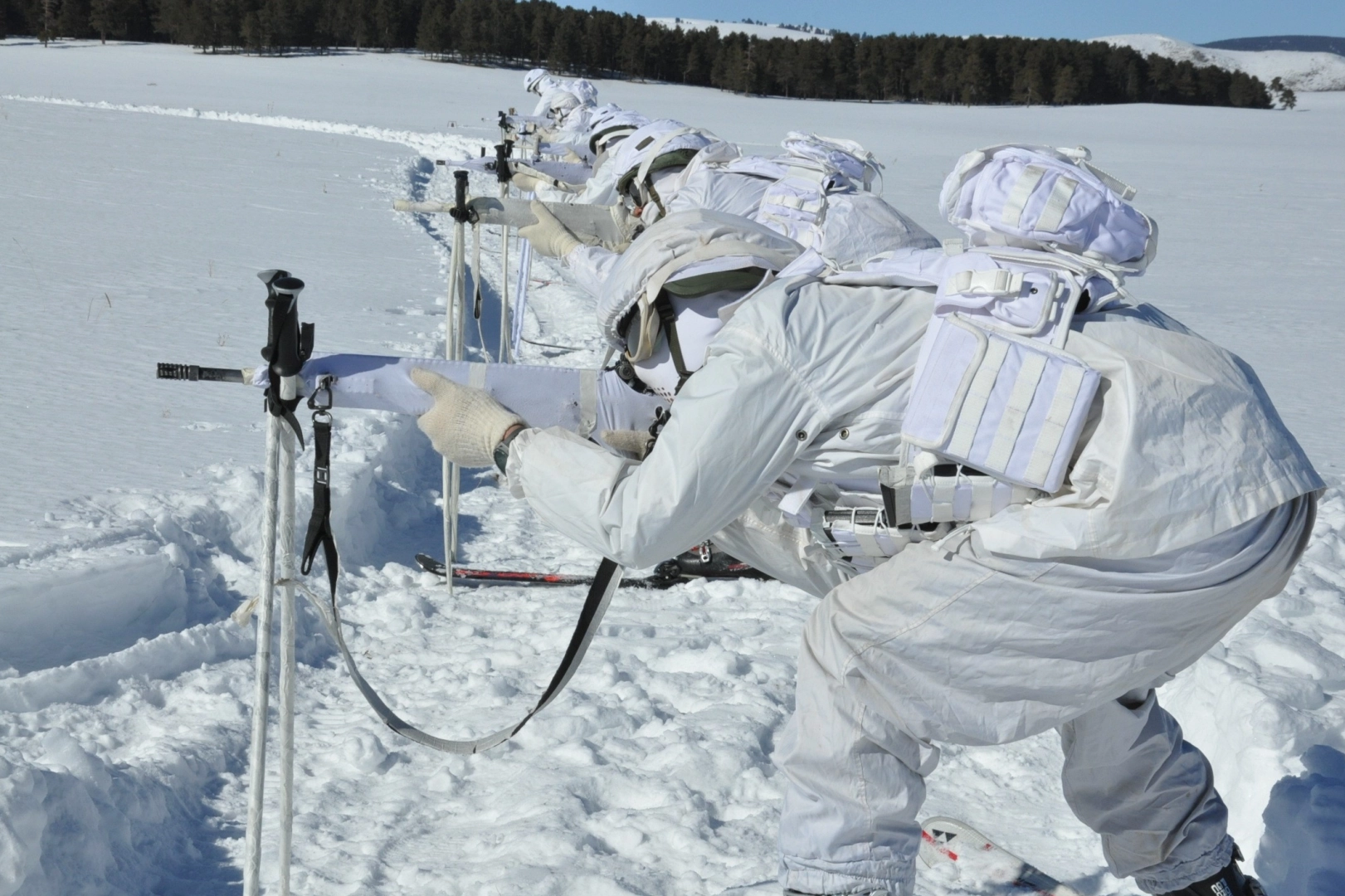 Sarıkamış’ta eksi 25 derece soğuk ve 2-3 metreyi bulan karda aralarında kadınların da bulunduğu komandolar, gece gündüz eğitimlerini sürdürüyor.