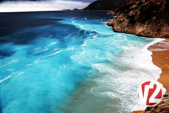 Kaş ilçesinde bulunan Kaputaş'ta denizde yağmurdan sonra oluşan mavi renk armonisi muhteşem bir görüntüye sahne oldu.