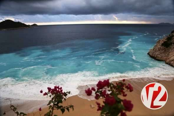 Antalya'nın Kaş ilçesinde etkili olan şiddetli yağmurun ardından dünyaca ünlü Kaputaş plajında oluşan mavinin her tonu kendisine hayran bıraktı.