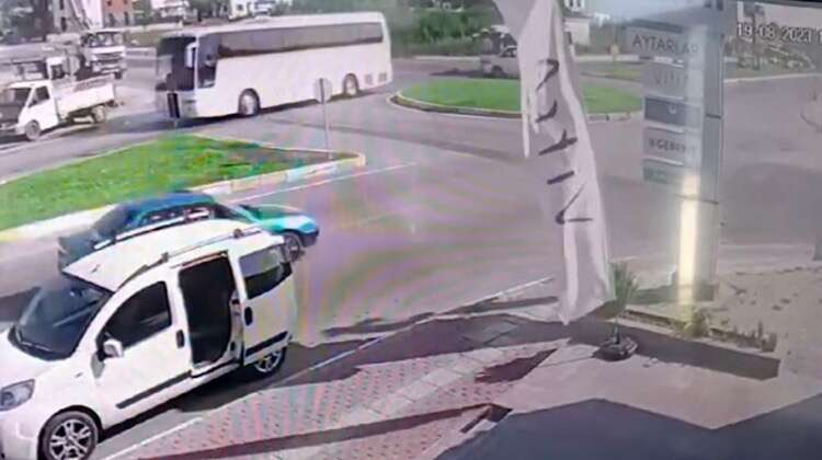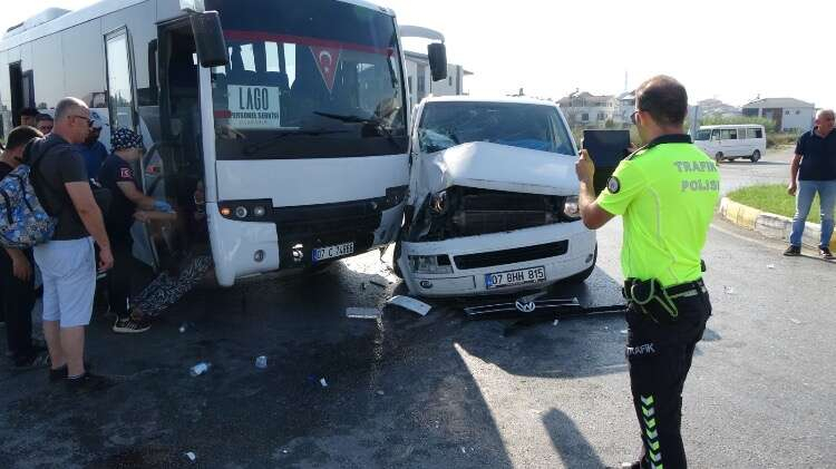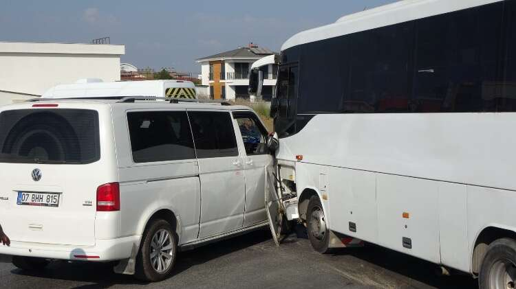 Otel servisi midibüs ile minibüs çarpıştı, güvenlik kamerasına yansıyan kazada 3 otel çalışanı yaralandı.