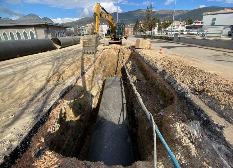 Büyükşehir Belediyesi BUSKİ Genel Müdürlüğü, Gemlik’te İstanbul Yolu üstünde kalan Umurbey ve Hisar Mahallelerinin kanalizasyon ve yağmur suyu hatlarını, yatay delgi çalışması ile karayolunun altından geçirerek, bölgedeki ana kolektör hattına bağlıyor.