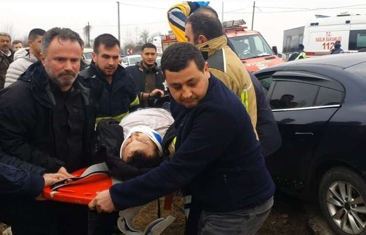 Bursa'nın İnegöl ilçesinde özel halk otobüsü ile otomobil kafa kafaya çarpıştı ve 1 kişinin öldüğü, 8 kişinin yaralandığı kaza anı araç kamerasına yansıdı.