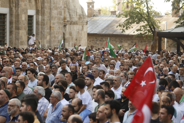 Bursa’da Gönüllü Kuruluşlar Platformu, Hamas lideri İsmail Haniye’nin suikastı sonrası Ulu Cami önünde basın açıklaması gerçekleştirdi.