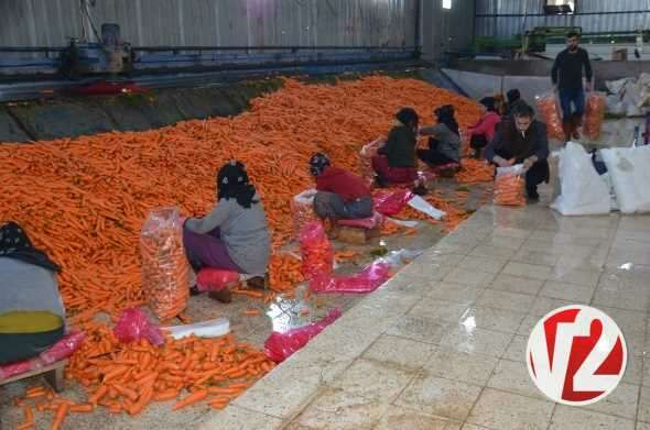 Çamurdan arındırılan havuçlar, paketlemeye hazır hale getiriliyor.