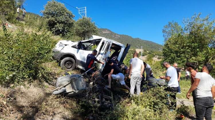 İşçileri taşıyan kamyonet uçuruma yuvarlandı 1 ölü, 3 yaralı