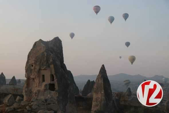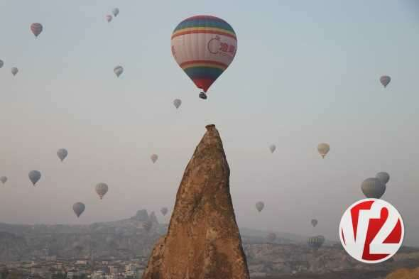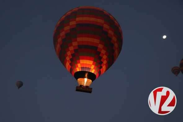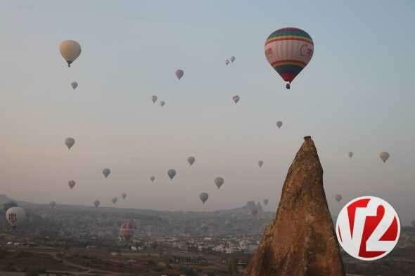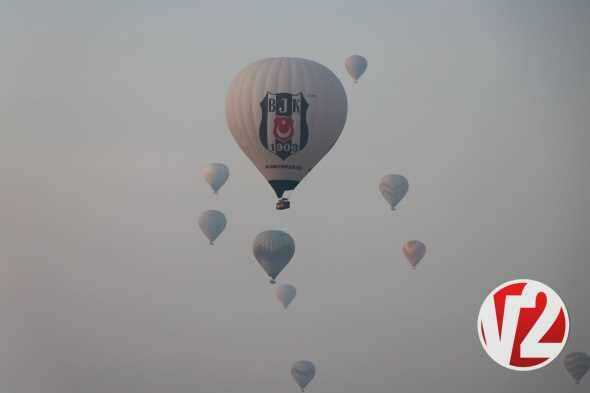 Sabahın ilk ışıklarıyla birlikte havalanan sıcak hava balon turlarına yerli ve yabancı turistler büyük ilgi gösterirken balonların görsel şöleni kendisine hayran bıraktı.