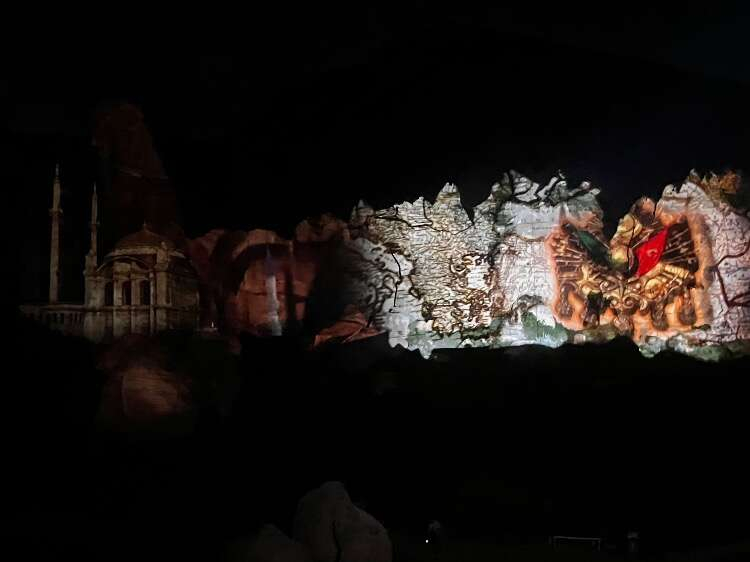 Kapadokya'da tarih peribacalarına yansıtıldı