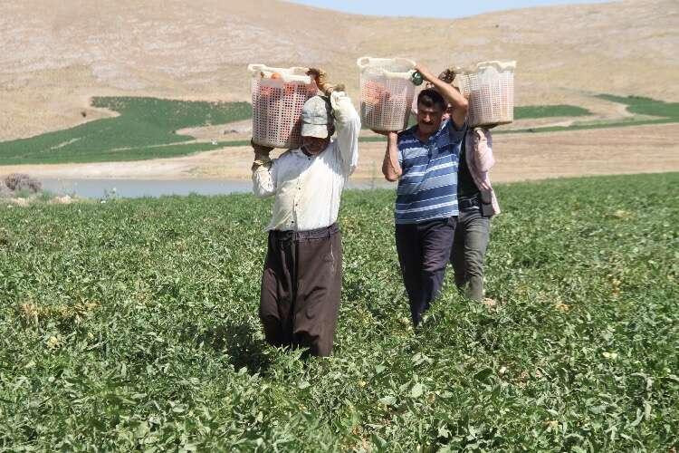 En sıcak ve boğucu günlerin yaşandığı, sıcaklık rekorlarının kırıldığı Elazığ’da mevsimlik tarım işçileri 42 derece altında ekmek mücadelesi veriyor.